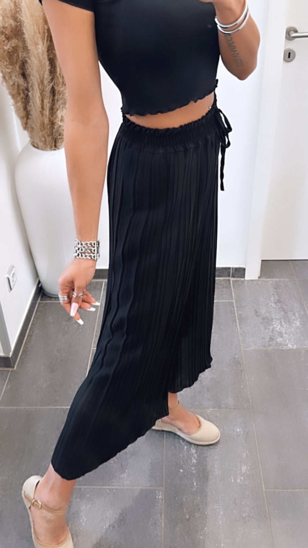 Den perfekta sommarbyxan: luftig, mjuk mot huden och lättskött. Denna eleganta plisserade byxa med integrerat viskosfoder känns skön att bära och är inte genomskinlig – perfekt både för semestern och vardagen.